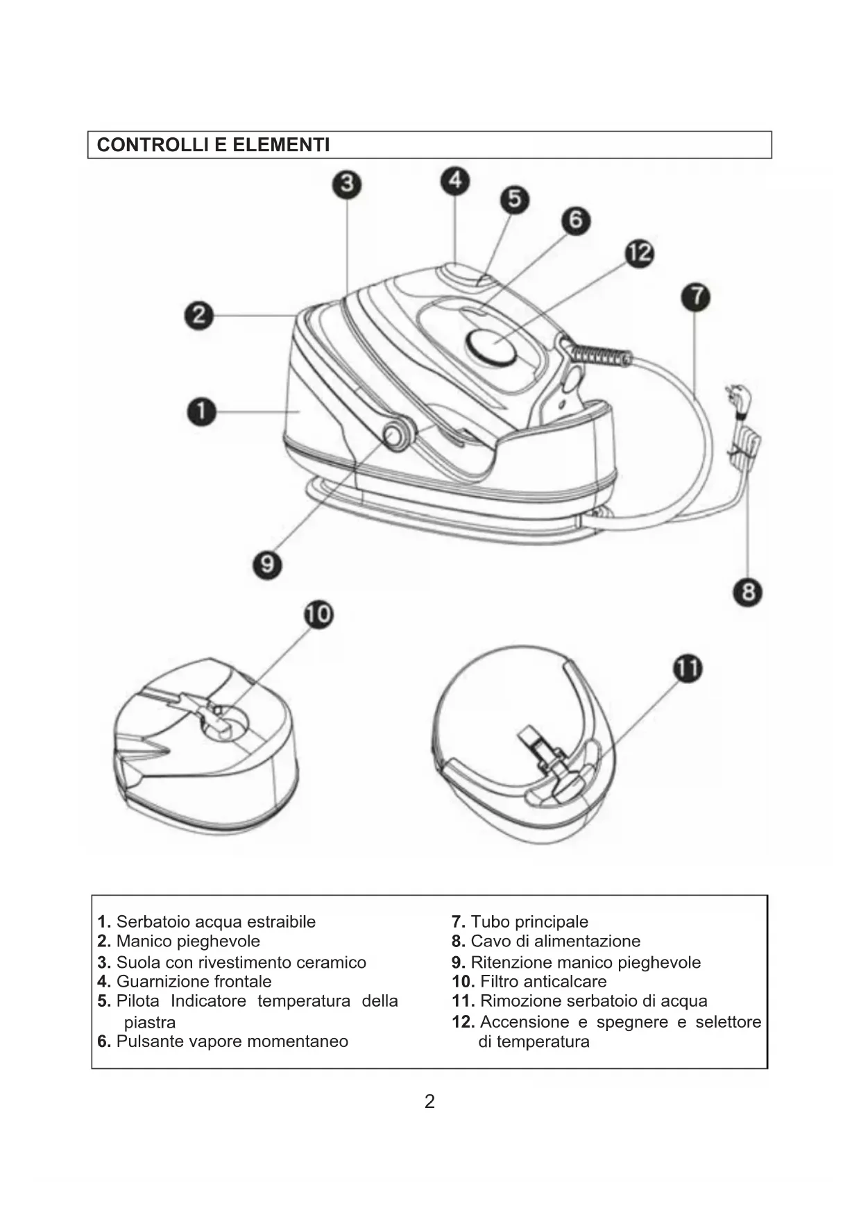 - Questo dispositivo funziona a temperature elevate, per cui, in uso fissano il ferro o l'unità principale impugnature isolanti e estrema cautela quando fanno uso di vapore (soprattutto in verticale).