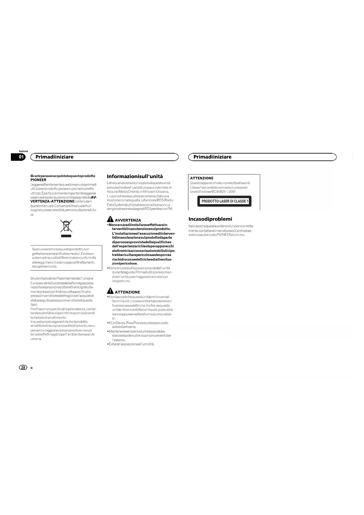 ATTENZIONE Questo apparecchio è un prodotto al laser di