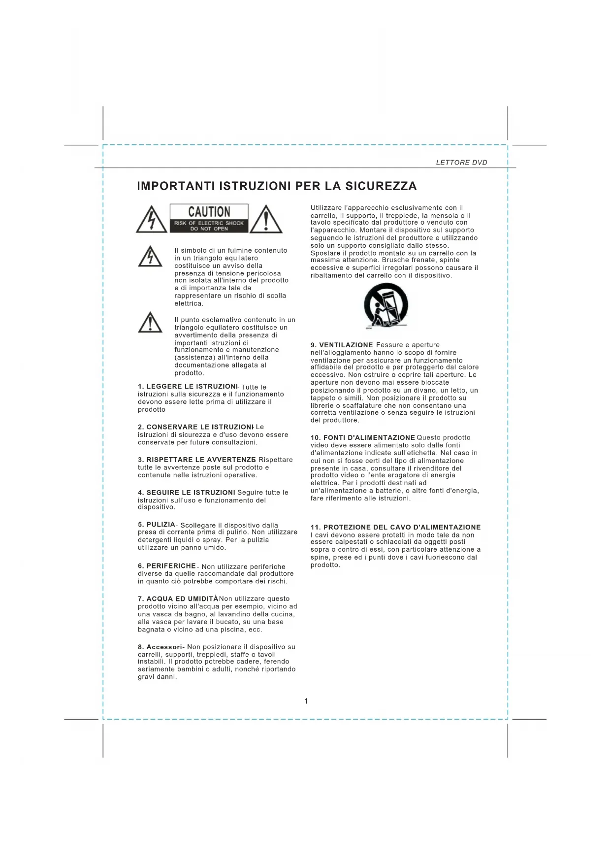 1. LEGGERE LE ISTRUZIONL Tutte le istruzioni sulla sicurezza e il funzionamento devono essere lette prima di utilizzato il prodotto