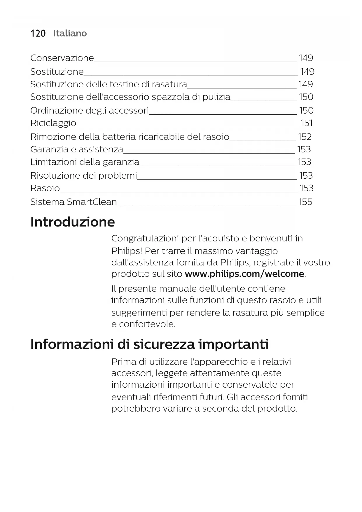 Rimozione della batteria ricaricabile del rasoio_________________ 152