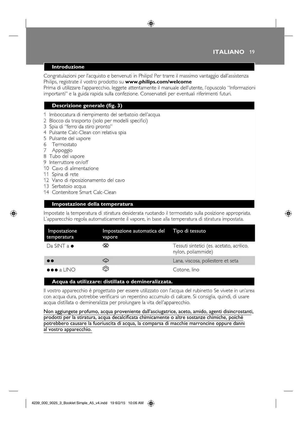 4239_000_9025_3_Booklet Simple_A5_v4.indd 19 6/2/15 10:06 AMIMPORTANTE - Pulizia e manutenzione