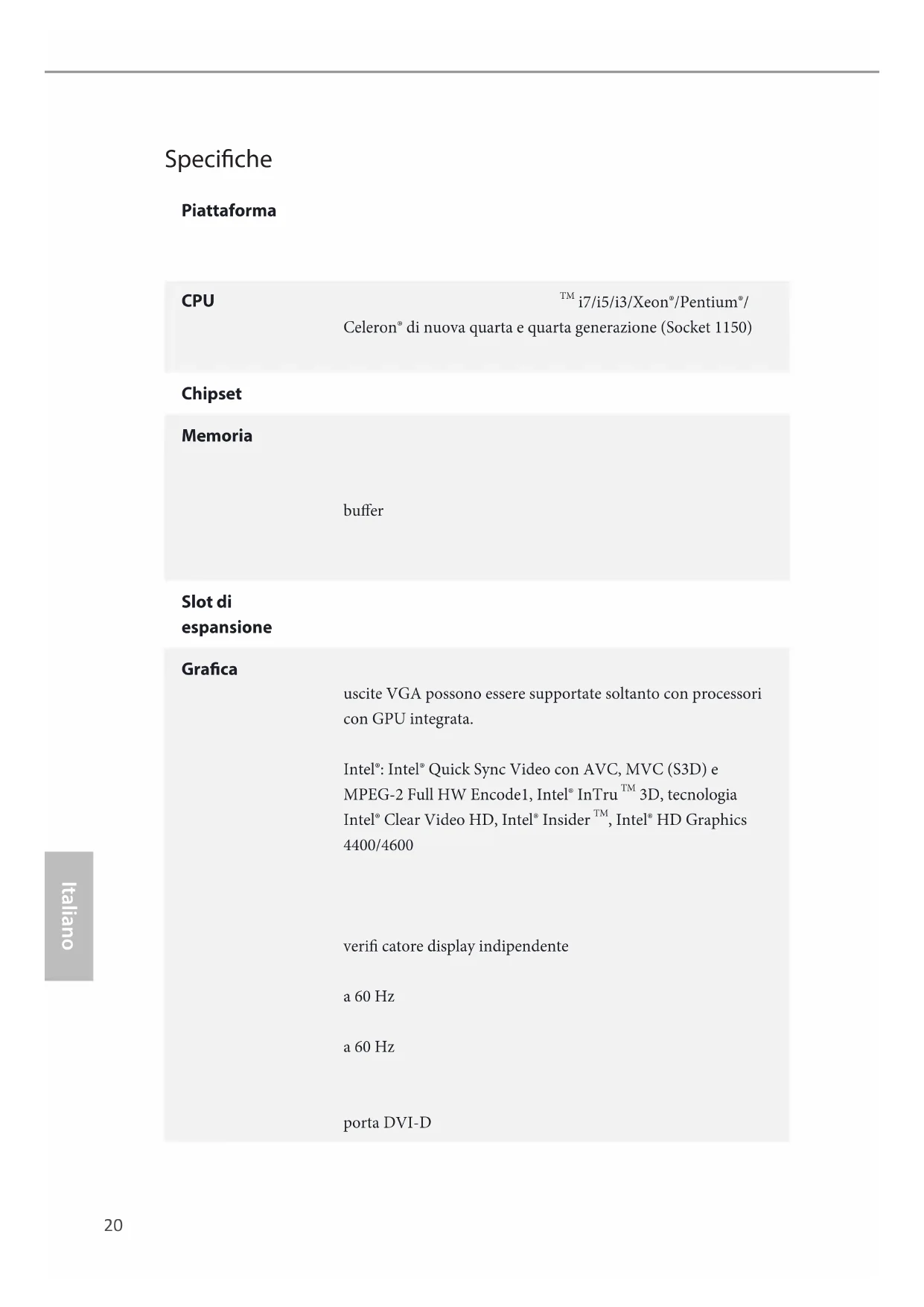 Scarica le istruzioni per il tuo Scheda madre in formato PDF gratuitamente! Trova il tuo manuale B85MDGS - ASROCK e riprendi in mano il tuo dispositivo elettronico. In questa pagina sono pubblicati tutti i documenti necessari per l'utilizzo del tuo dispositivo. B85MDGS del marchio ASROCK.