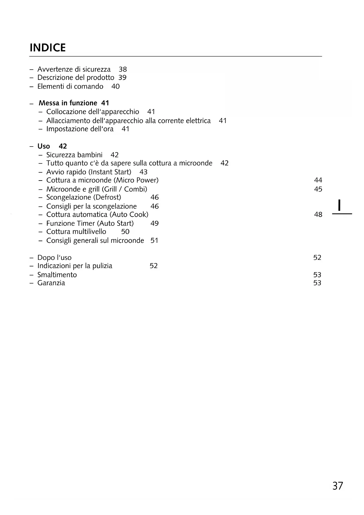 -Avvio rapido (Instant Start) 43 - Cottura a microonde (Micro Power) 44