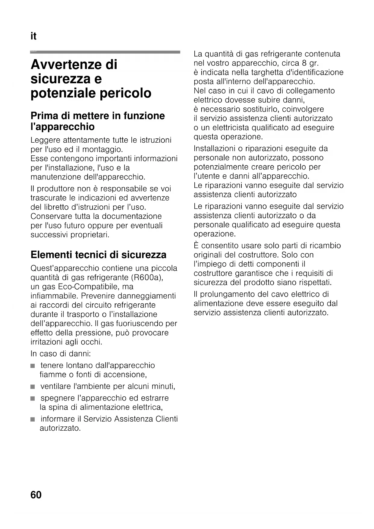 Avvertenze per lo smaltimento 62