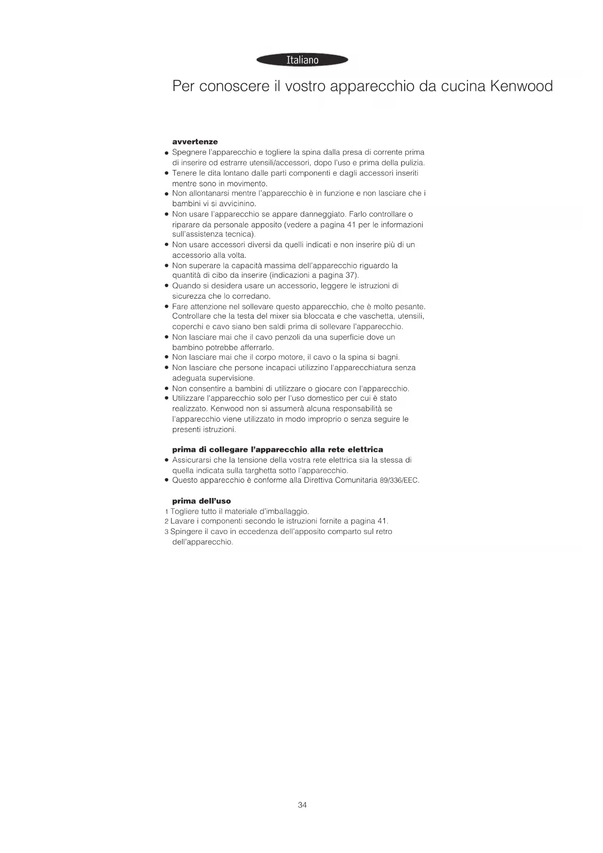 Italianoper conoscere il vostro apparecchio da cucina Kenwood