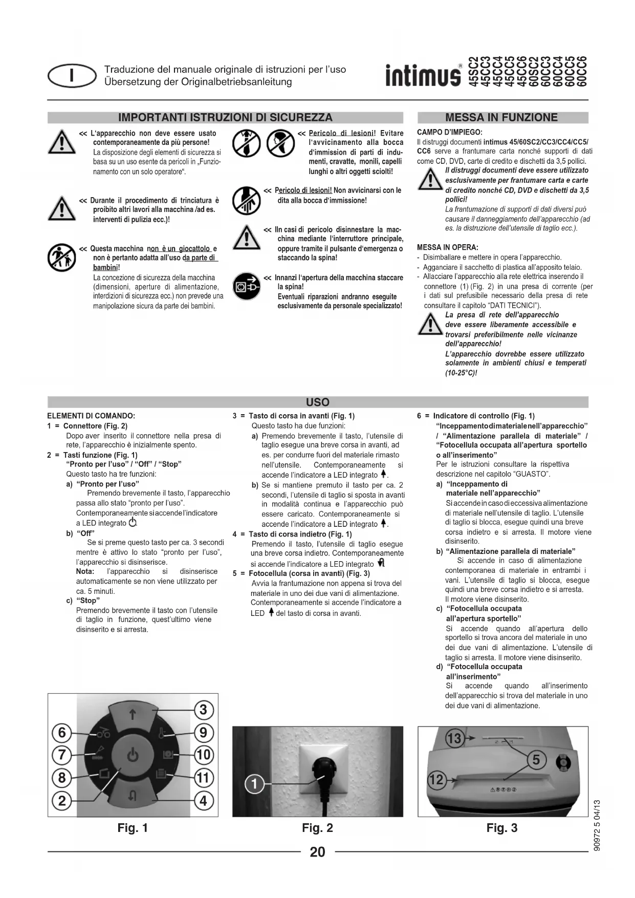 Scarica le istruzioni per il tuo Distruggi documenti in formato PDF gratuitamente! Trova il tuo manuale 45 CC3 - Intimus e riprendi in mano il tuo dispositivo elettronico. In questa pagina sono pubblicati tutti i documenti necessari per l'utilizzo del tuo dispositivo. 45 CC3 del marchio Intimus.
