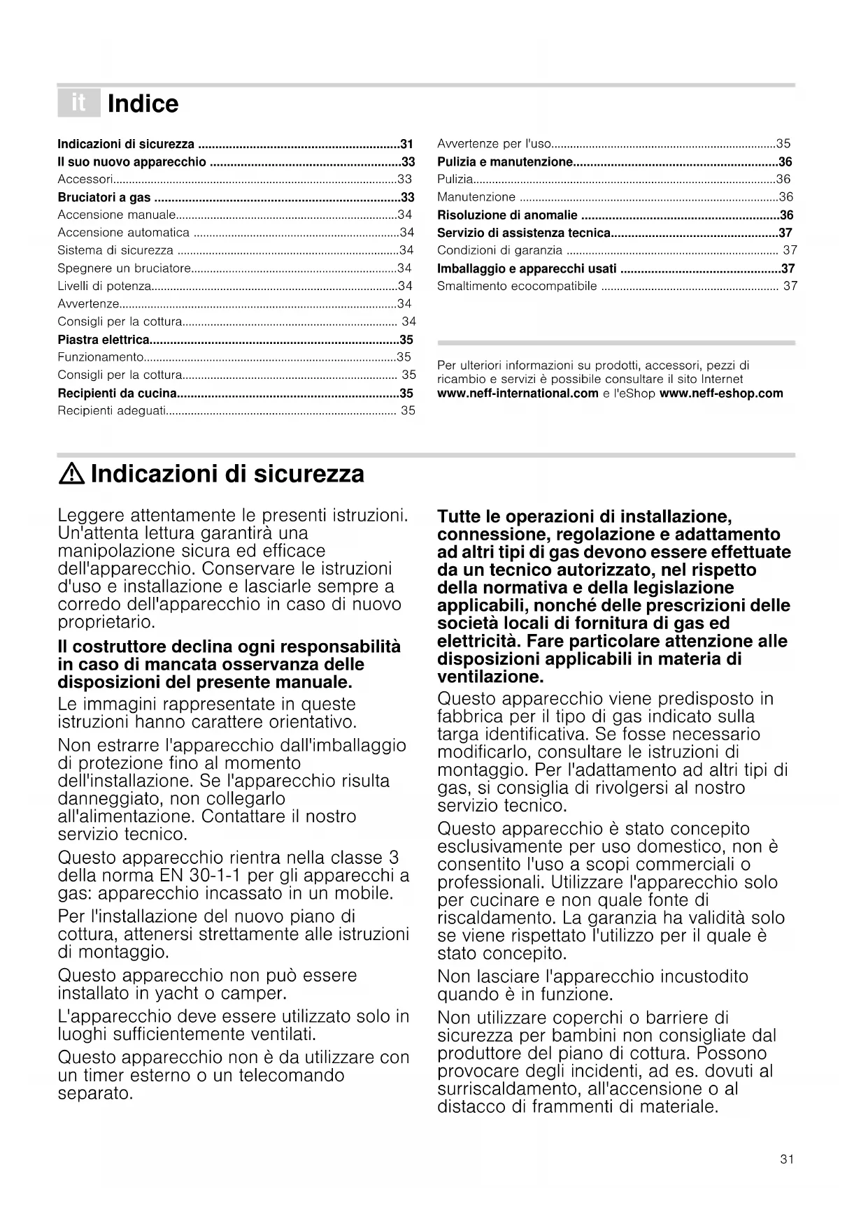www.neff-international.com e l'eShop www.neff-eshop.com