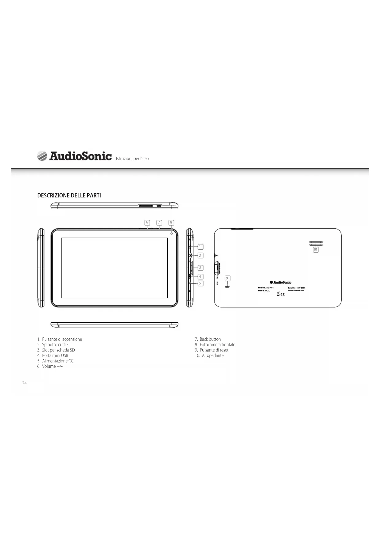 Scarica le istruzioni per il tuo Tablet in formato PDF gratuitamente! Trova il tuo manuale TL3491 - AudioSonic e riprendi in mano il tuo dispositivo elettronico. In questa pagina sono pubblicati tutti i documenti necessari per l'utilizzo del tuo dispositivo. TL3491 del marchio AudioSonic.