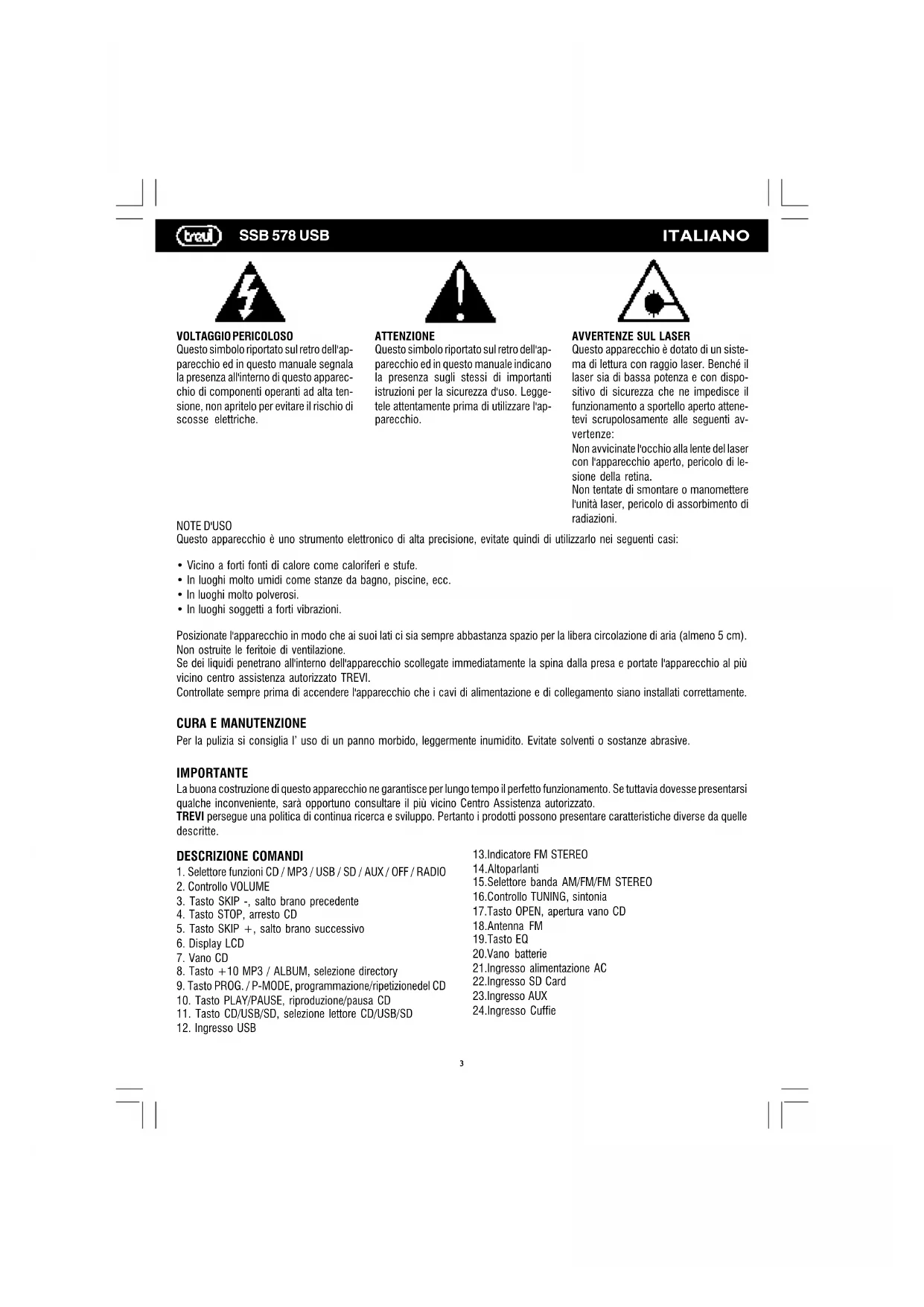 Trova gratuitamente il manuale del dispositivo SSB 578USB Trevi in formato PDF.