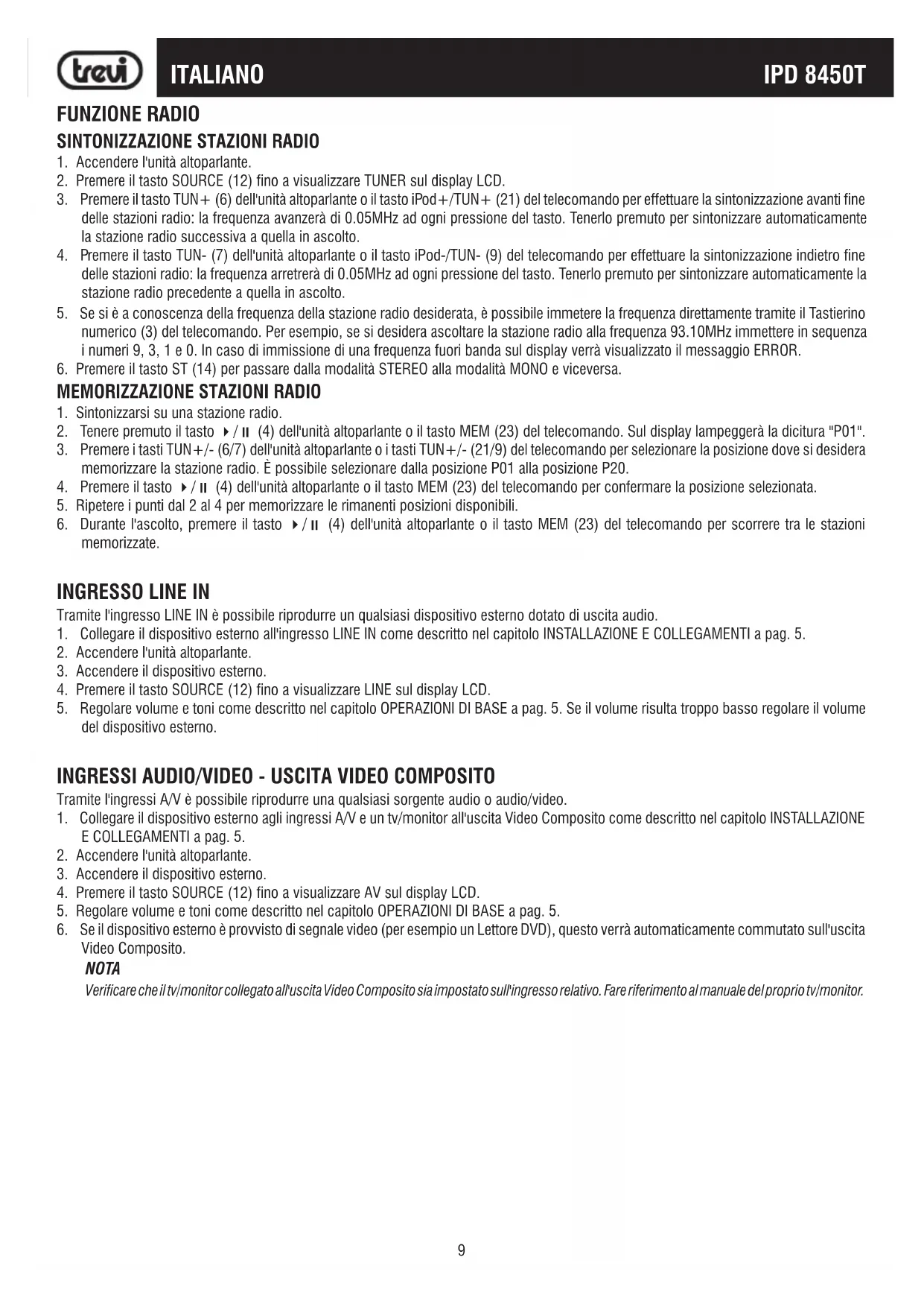MANUALE UTENTE IPD 8450 T Trevi