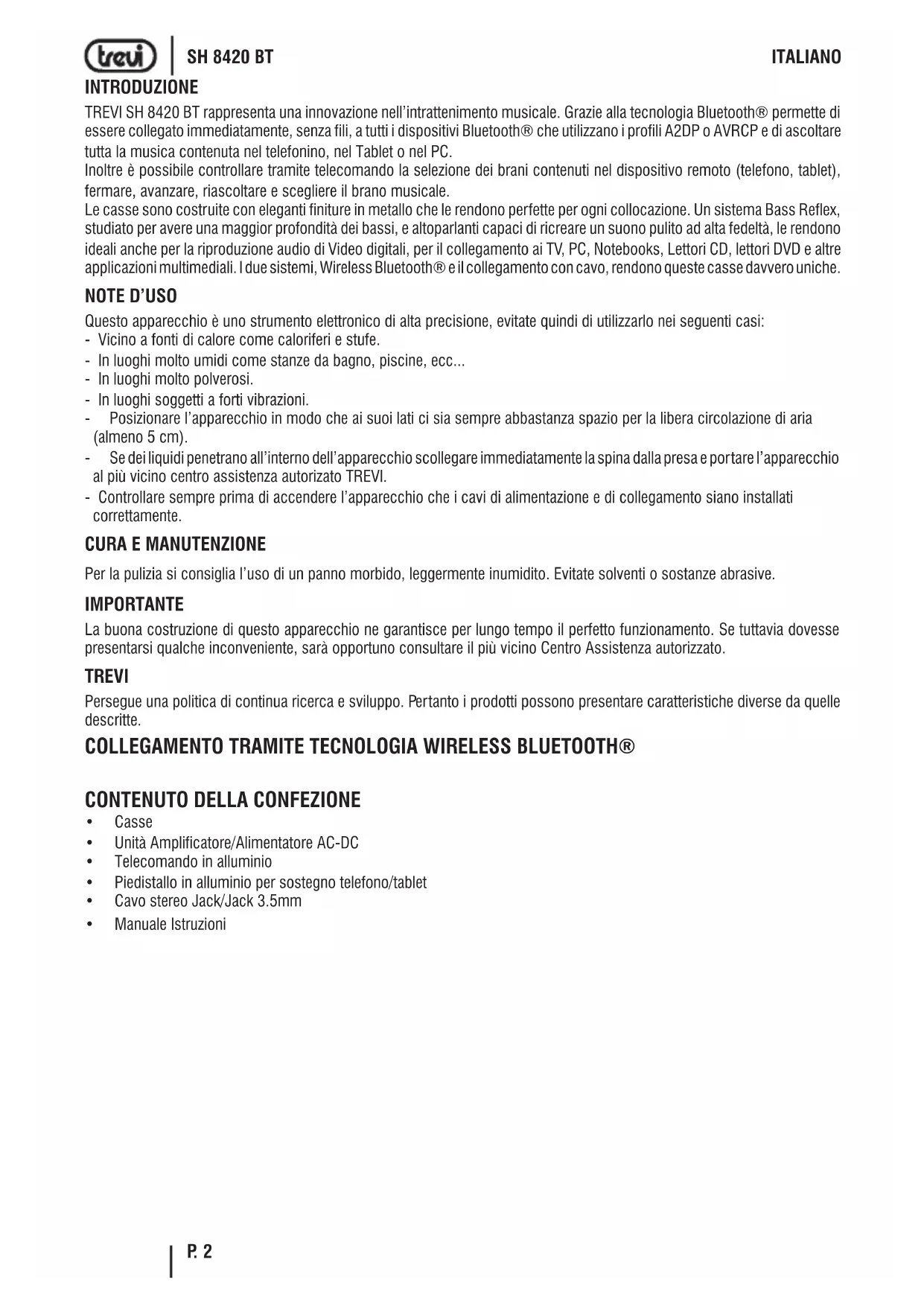 MANUALE UTENTE SH 8420 BT Trevi
