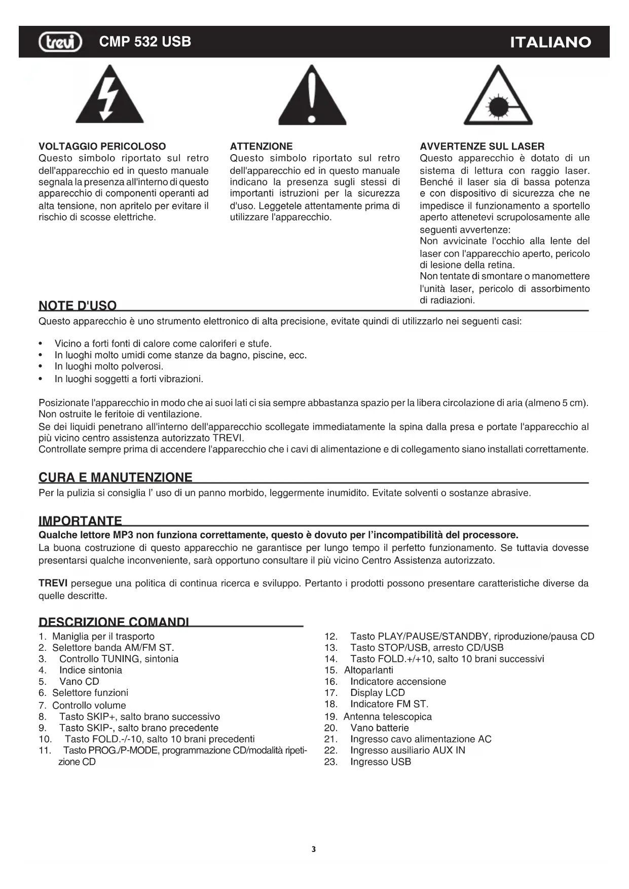 MANUALE UTENTE CMP 532 USB Trevi