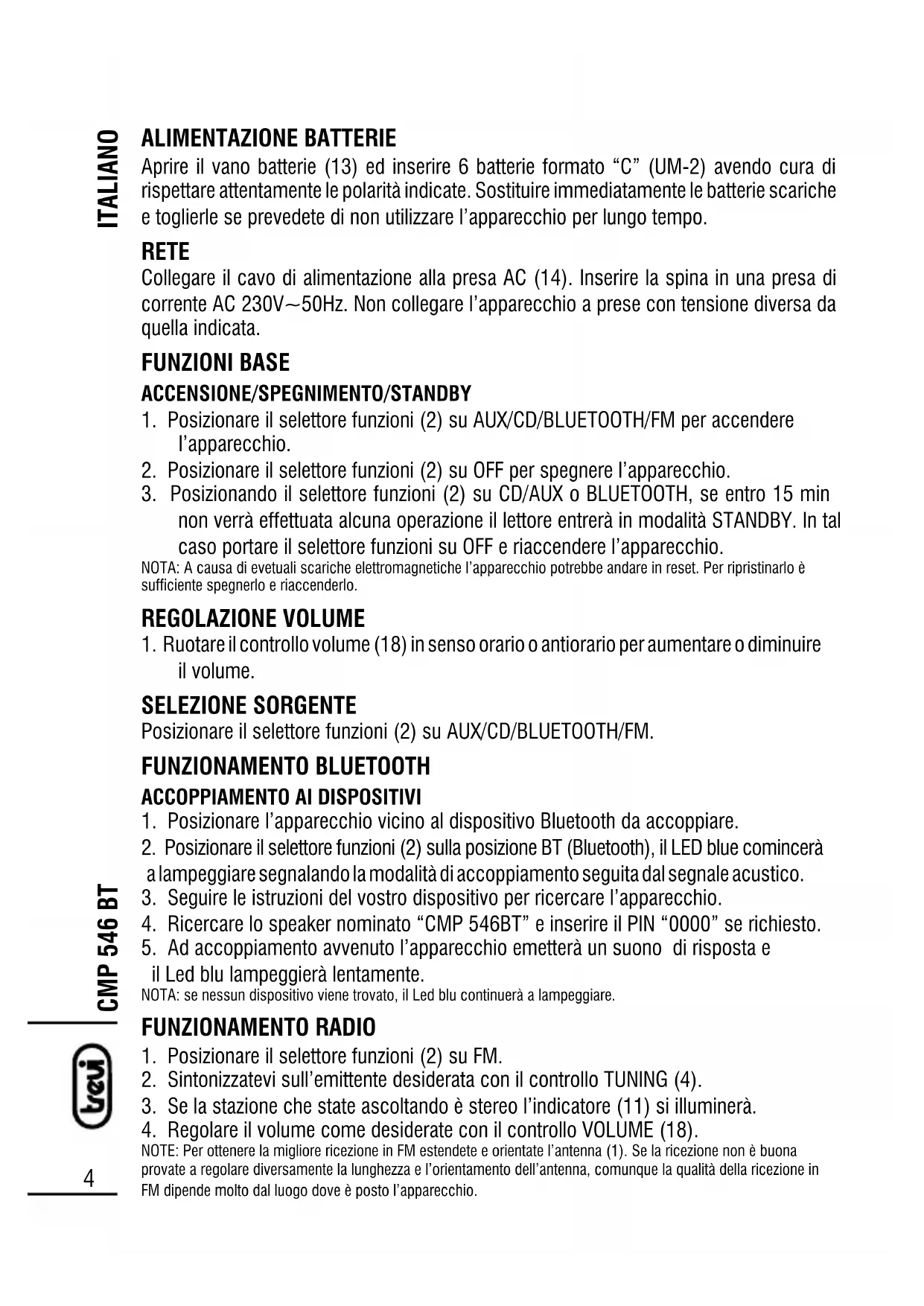 MANUALE UTENTE CMP 546 BT Trevi