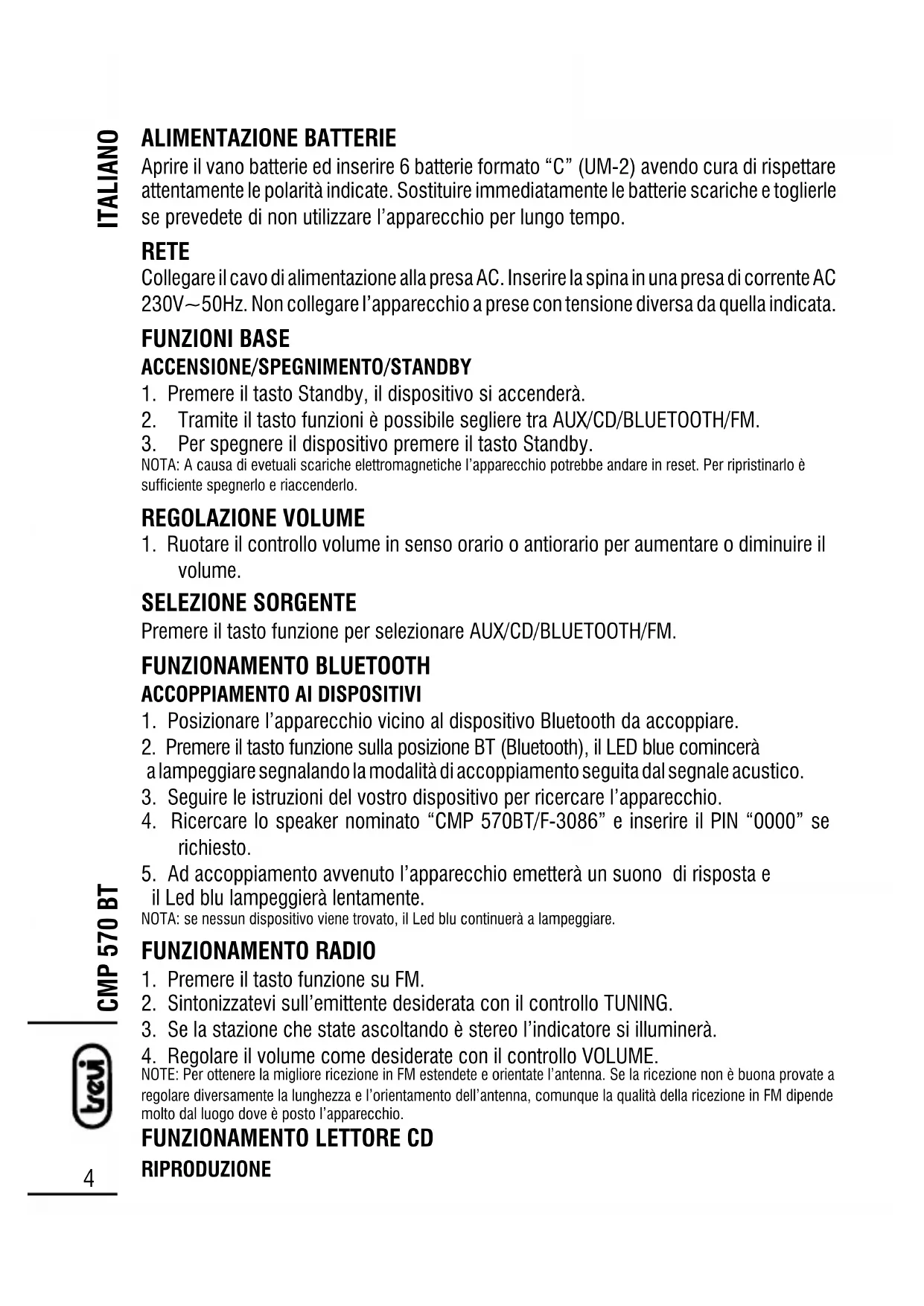 MANUALE UTENTE CMP 570 BT Trevi