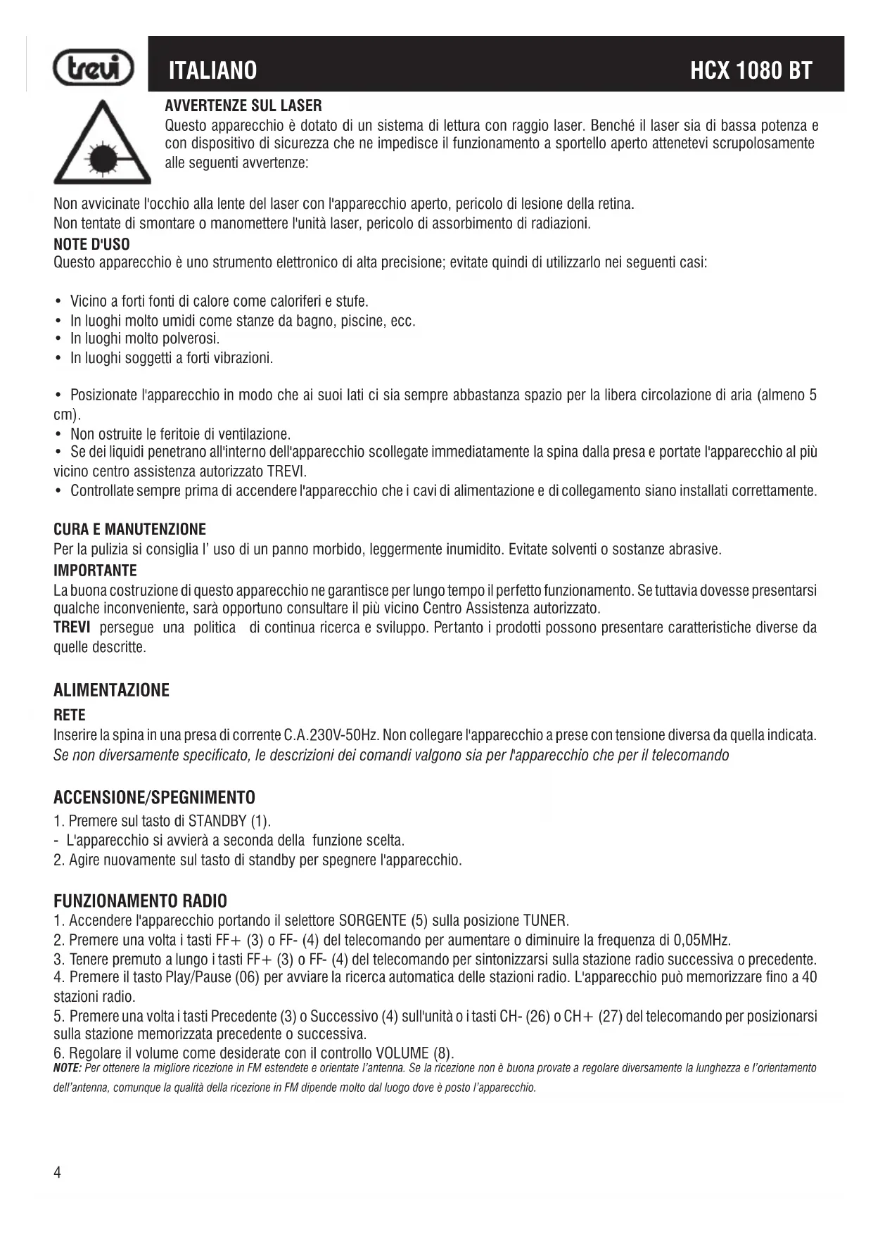 MANUALE UTENTE HCX 1080 BT Trevi