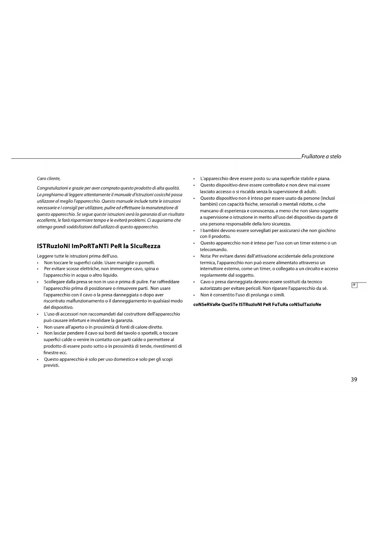 - Non è consentito l’uso di prolunga o simili. coNSeRVaRe queSTe ISTRuzIoNI PeR FuTuRa coNSulTazIoNe Frullatore a stelo1