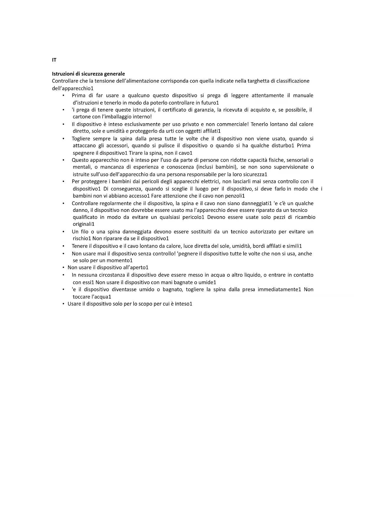 • Il dispositivo è inteso esclusivamente per uso privato e non commerciale! Tenerlo lontano dal calore