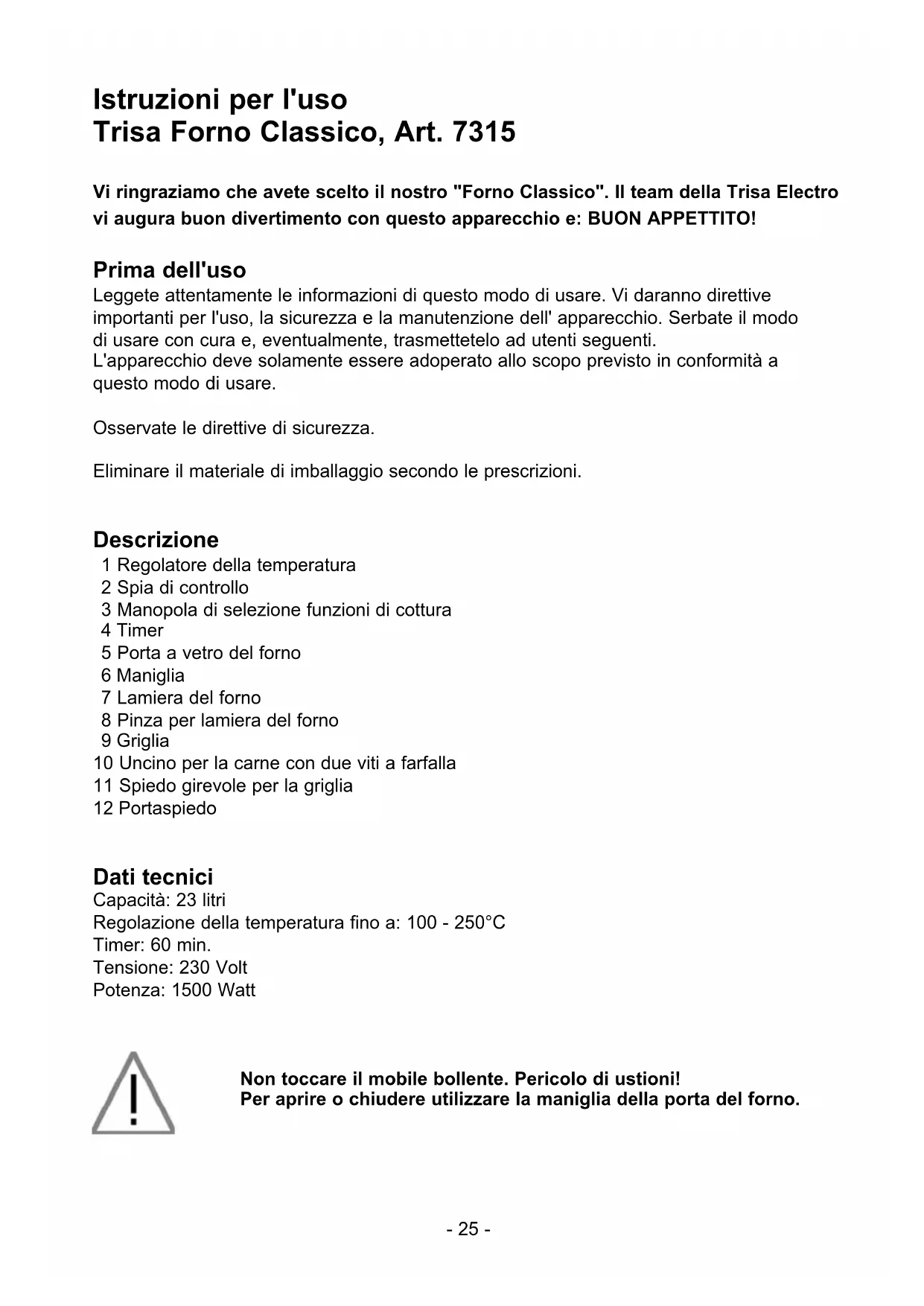 Istruzioni per l'uso Trisa Forno Classico, Art. 7315