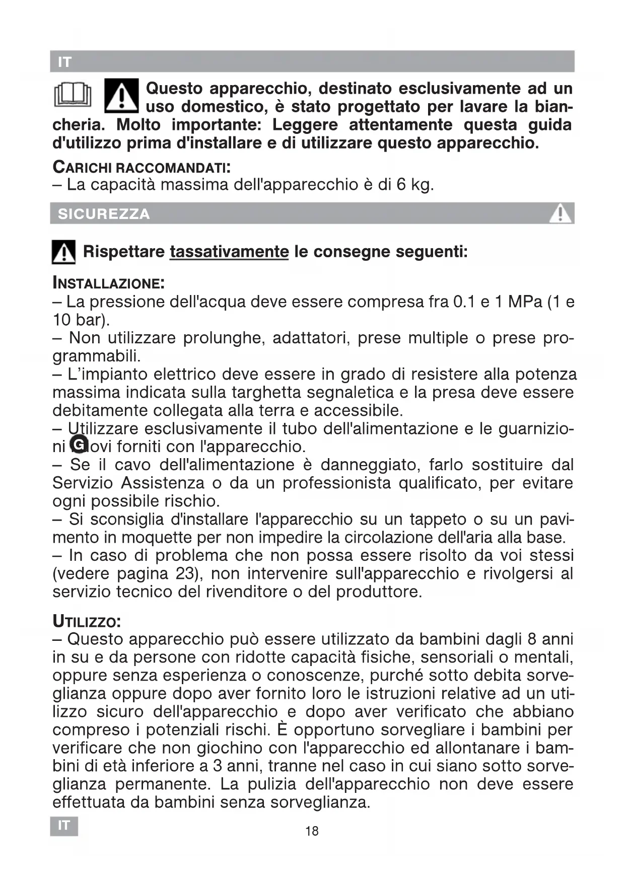 — A fine ciclo, avere cura di chiudere il rubinetto di arrivo dell'acqua