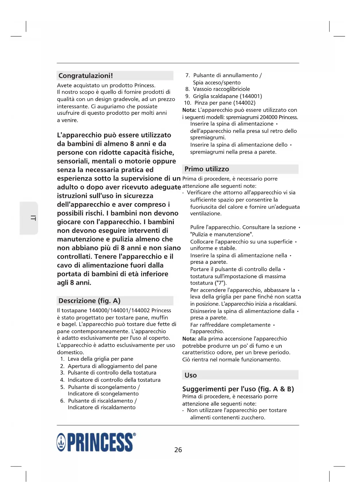 Scarica le istruzioni per il tuo Tostapane in formato PDF gratuitamente! Trova il tuo manuale Compact4All Toaster 144000 - PRINCESS e riprendi in mano il tuo dispositivo elettronico. In questa pagina sono pubblicati tutti i documenti necessari per l'utilizzo del tuo dispositivo. Compact4All Toaster 144000 del marchio PRINCESS.