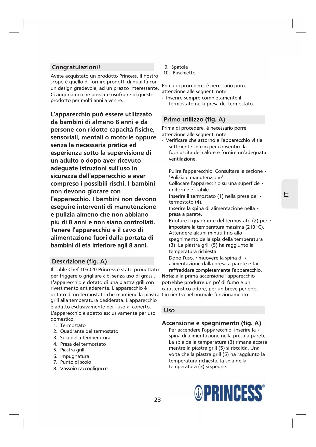 Trova gratuitamente il manuale del dispositivo Table Grill Fiësta 103020 PRINCESS in formato PDF.