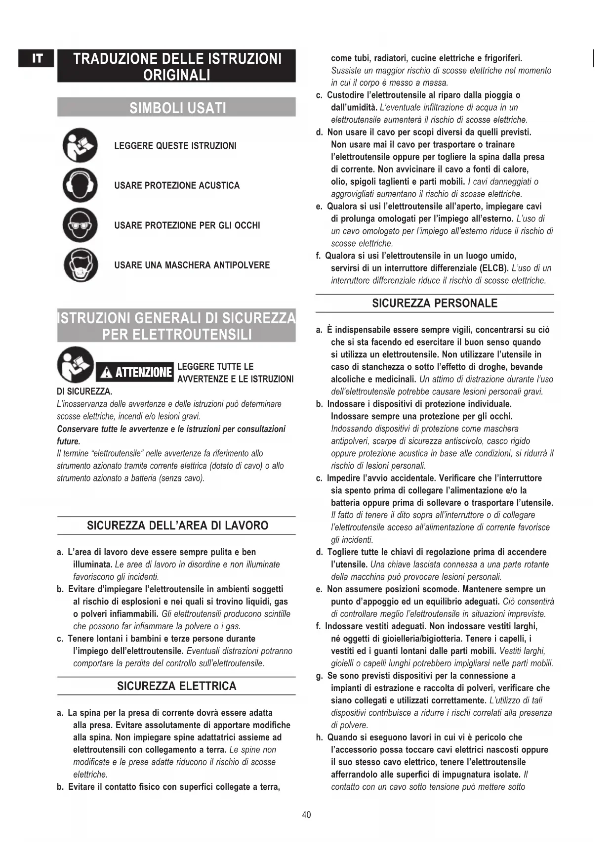 Traduzione delle istruzioni originali 40