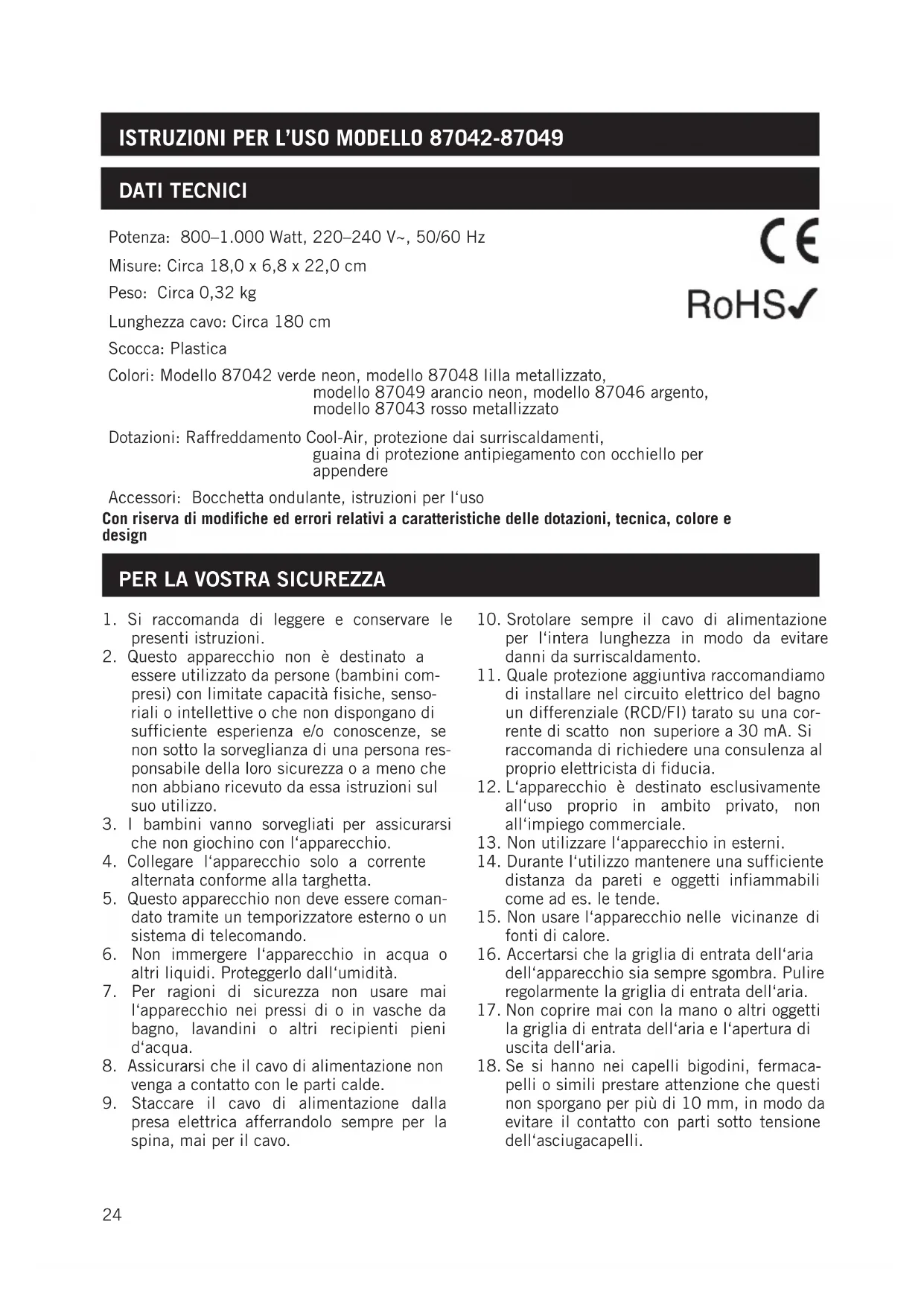 23. L‘apparecchio è dotato di una protezione