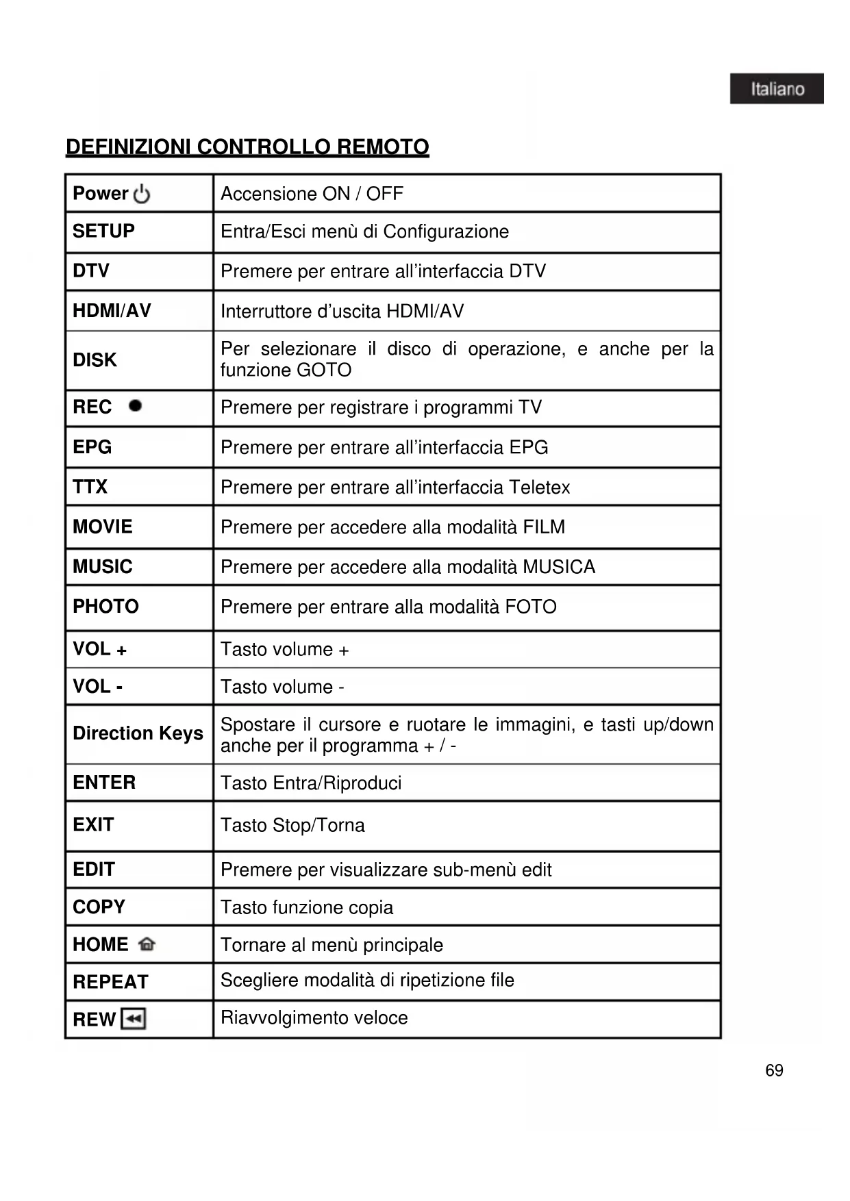 Definizioni controlo remoto 69