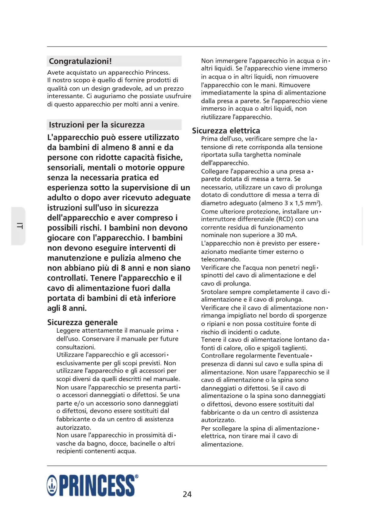 Avete acquistato un apparecchio Princess.