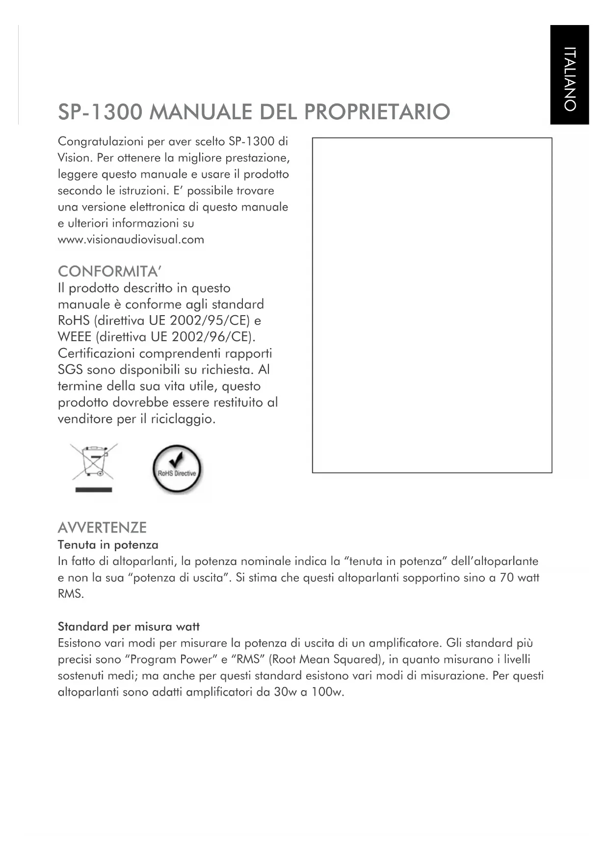 SP1300B - Altoparlante VISION - Manuale utente e istruzioni gratuiti