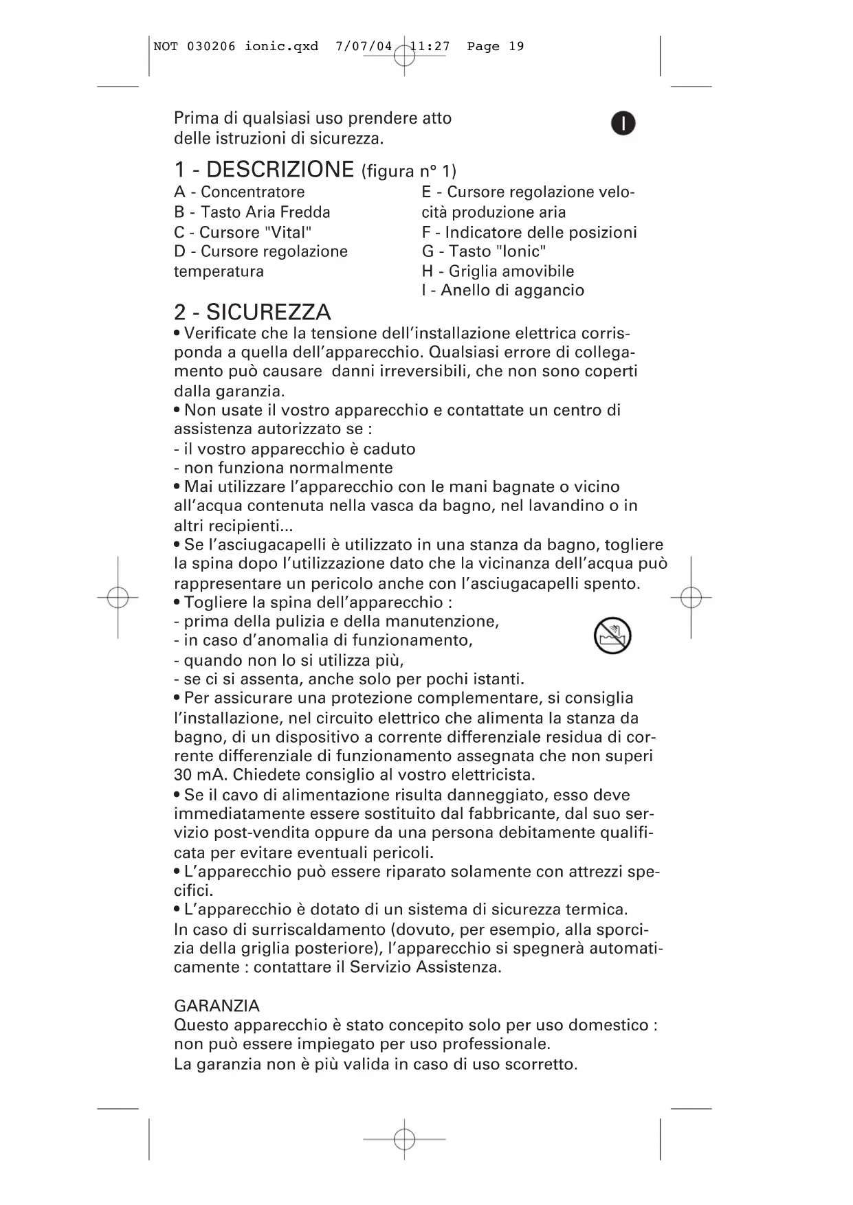 GARANZIA Questo apparecchio è stato concepito solo per uso domestico :