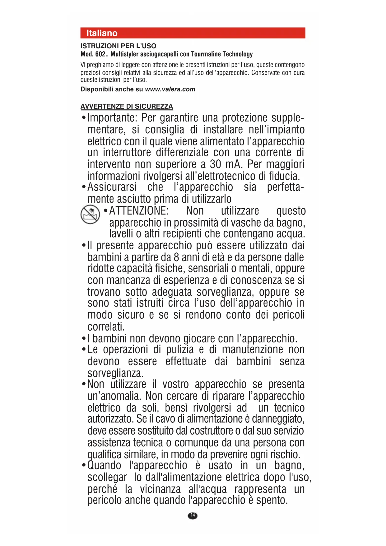 MANUALE UTENTE Pro Style 400 Tourmaline 602.01B VALERA