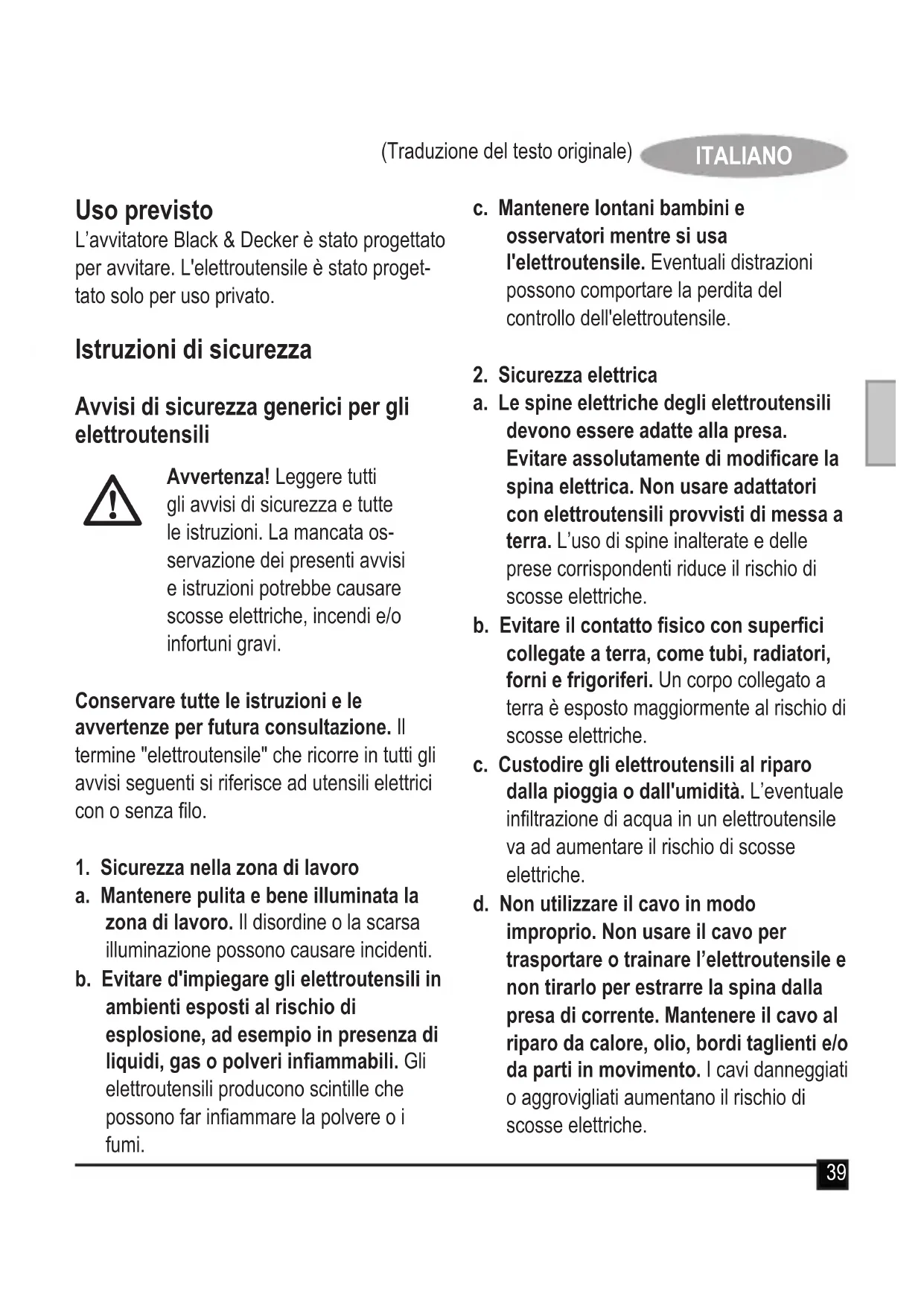 Scarica le istruzioni per il tuo Avvitatore in formato PDF gratuitamente! Trova il tuo manuale Gyro Driver - BLACK & DECKER e riprendi in mano il tuo dispositivo elettronico. In questa pagina sono pubblicati tutti i documenti necessari per l'utilizzo del tuo dispositivo. Gyro Driver del marchio BLACK & DECKER.