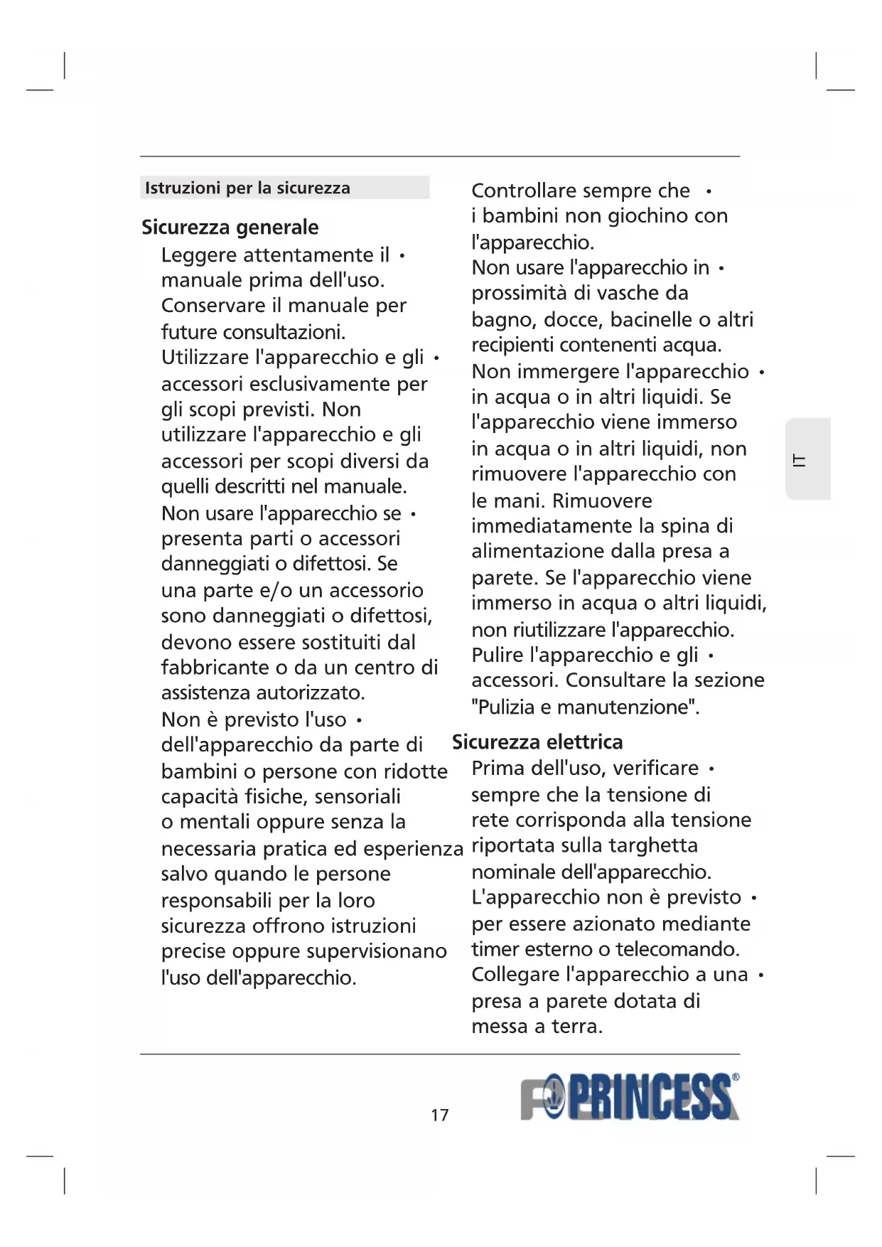 Trova gratuitamente il manuale del dispositivo Blender Pro4 Series 217202 PRINCESS in formato PDF.