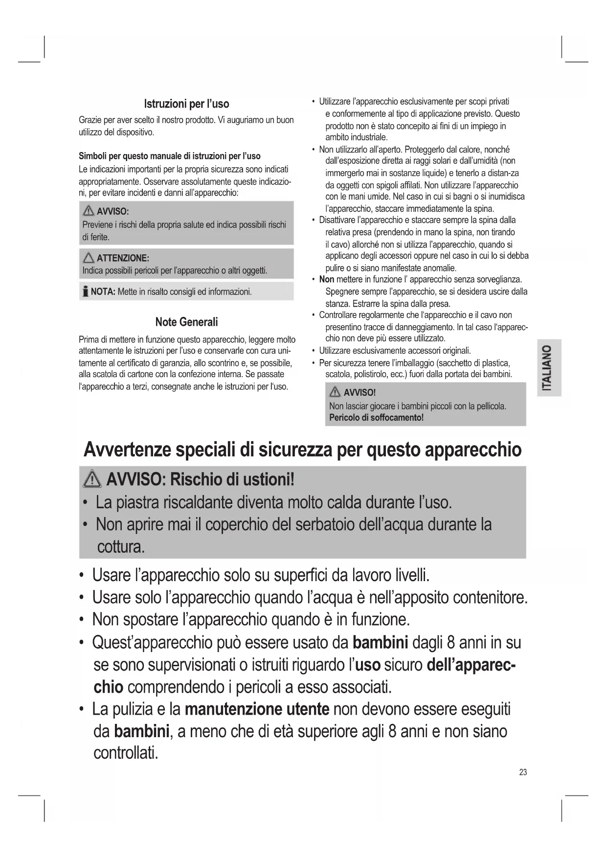 • Tenere sempre l’apparecchio fuori dalla portata dei bambini