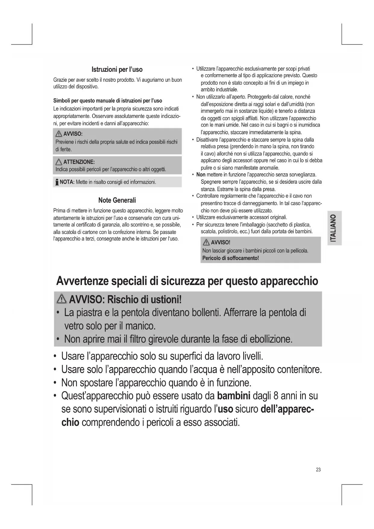 AVVISO: Rischio di ustioni!