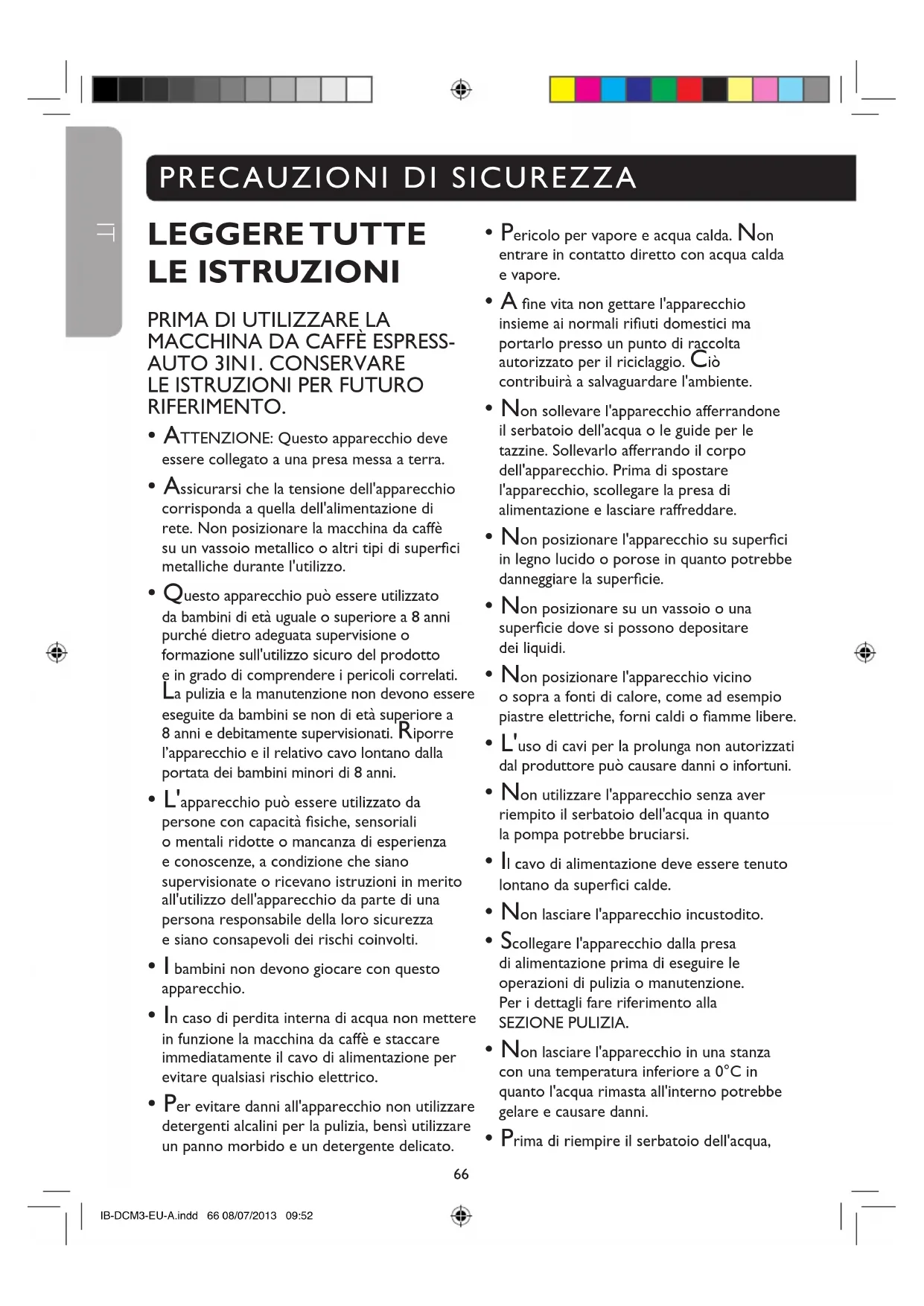 - Prima di riempire il serbatoio dell'acqua, IB-DCM3-EU-A.indd 66 08/07/2013 09:5267