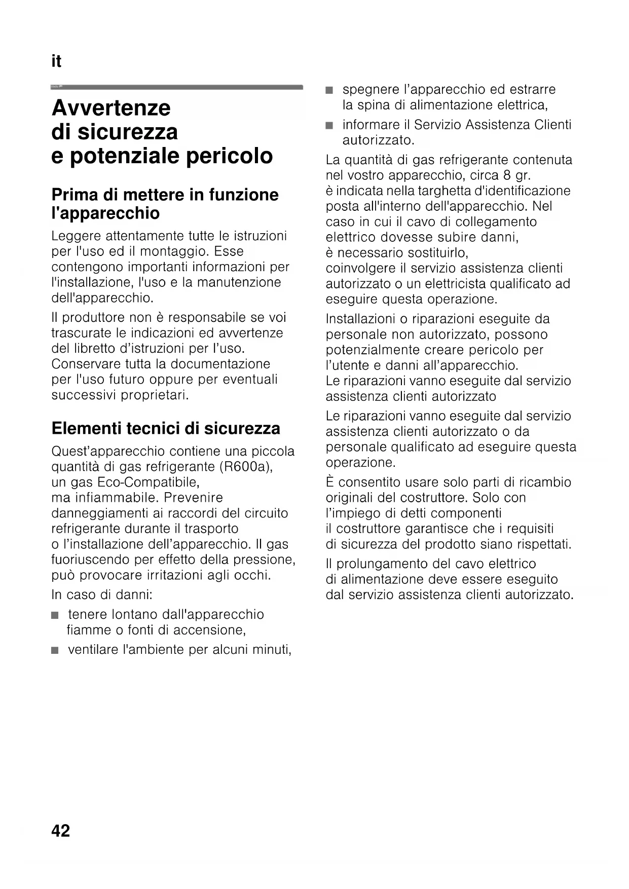 o l’installazione dell’apparecchio. Il gas