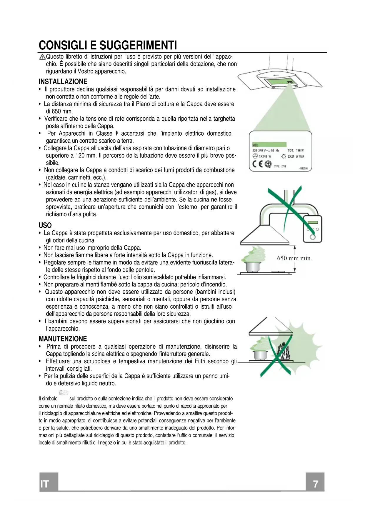 • La Cappa è stata progettata esclusivamente per uso domestico, per abbattere