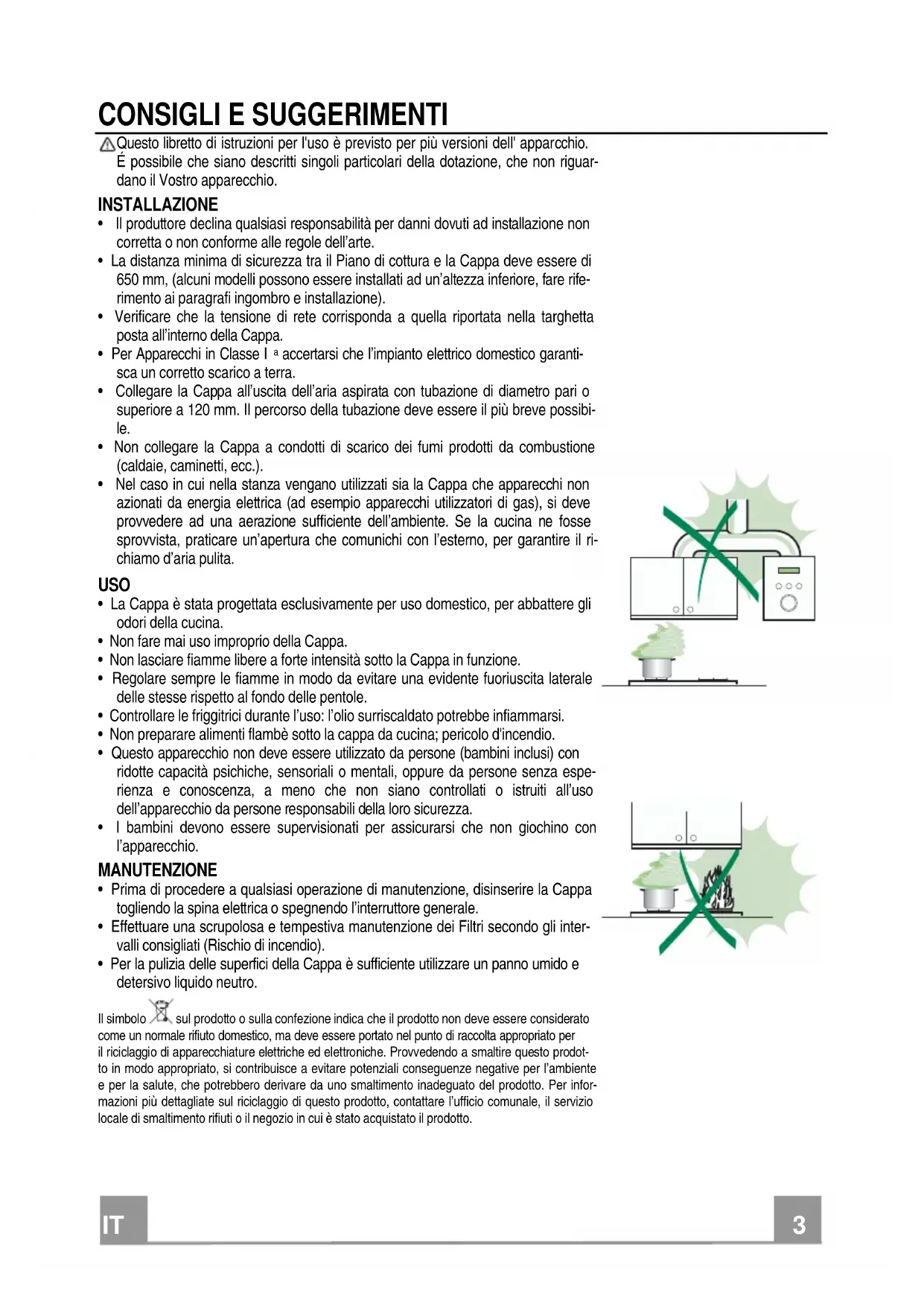 • Non lasciare fiamme libere a forte intensità sotto la Cappa in funzione.