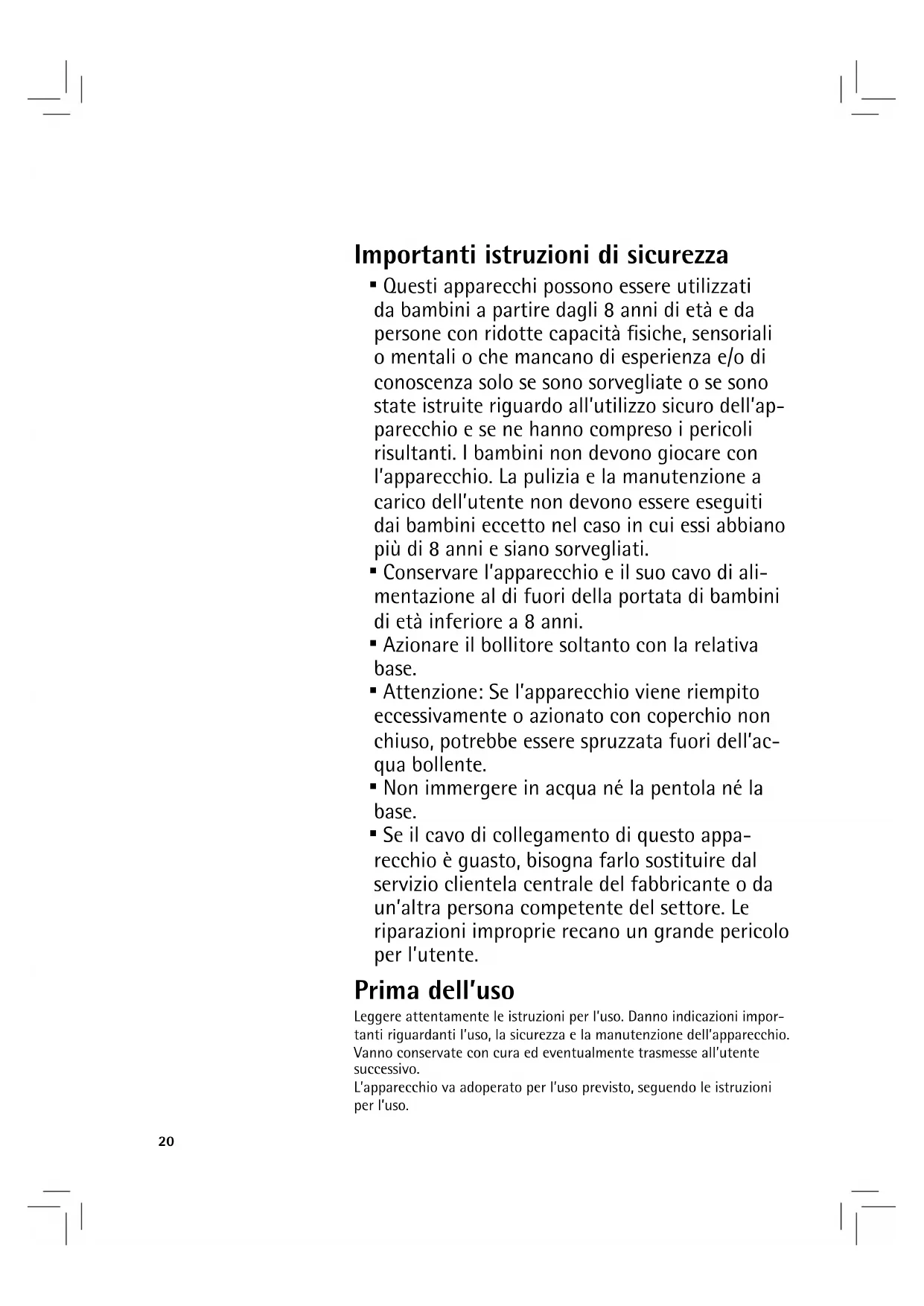 Leggere attentamente le istruzioni per l’uso. Danno indicazioni impor-