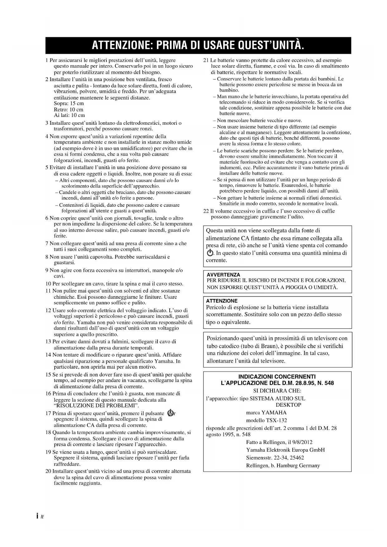 MANUALE UTENTE TSX132B YAMAHA