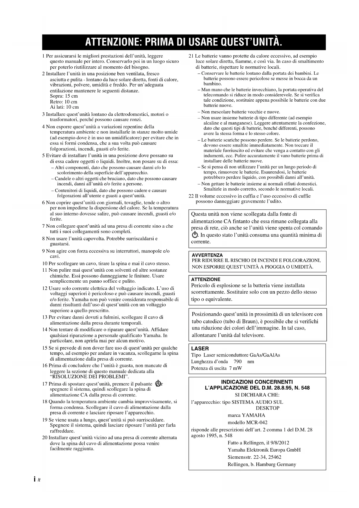 Trova gratuitamente il manuale del dispositivo MCR042 YAMAHA in formato PDF.