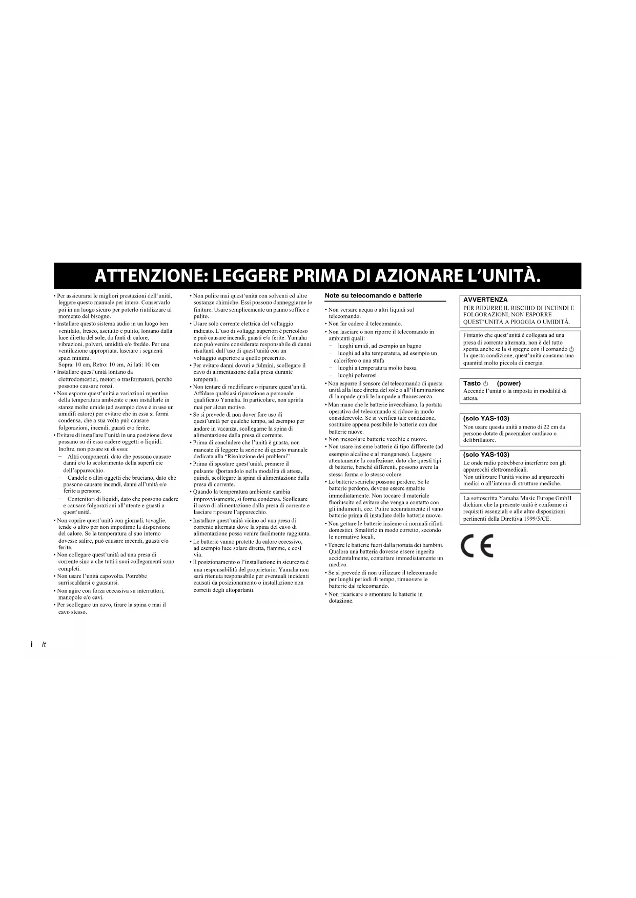e può causare incendi, guasti e/o ferite. Yamaha