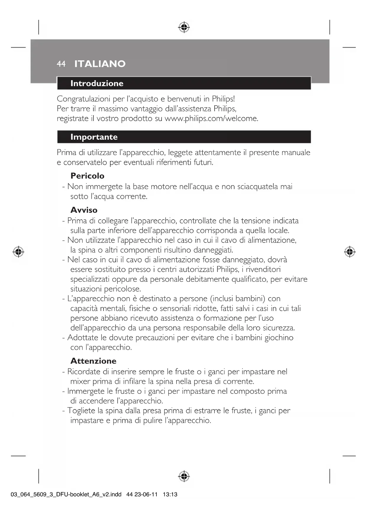 4203_064_5609_3_DFU-booklet_A6_v2.indd 44 23-06-11 13:13- Non usate mai accessori o parti di altri produttori o non