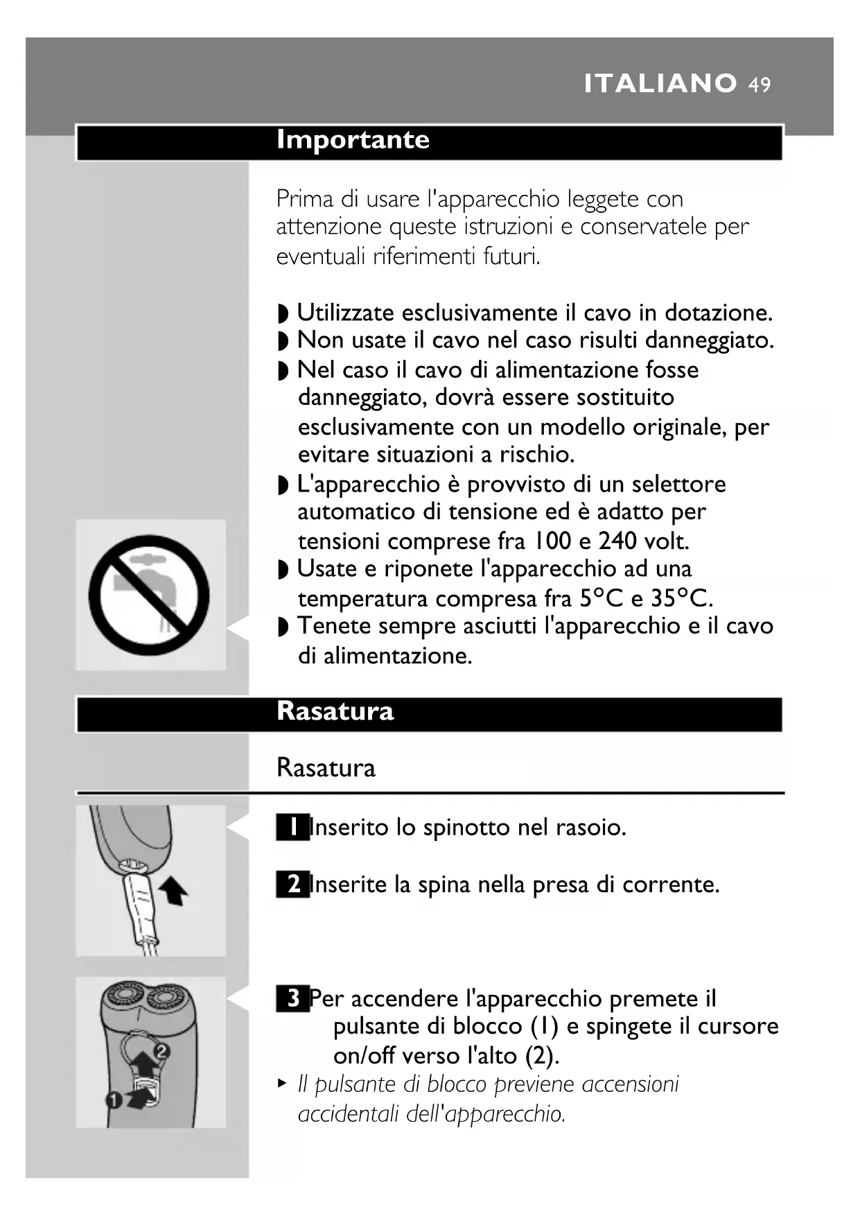 1 Spegnete il rasoio, togliete la spina dalla
