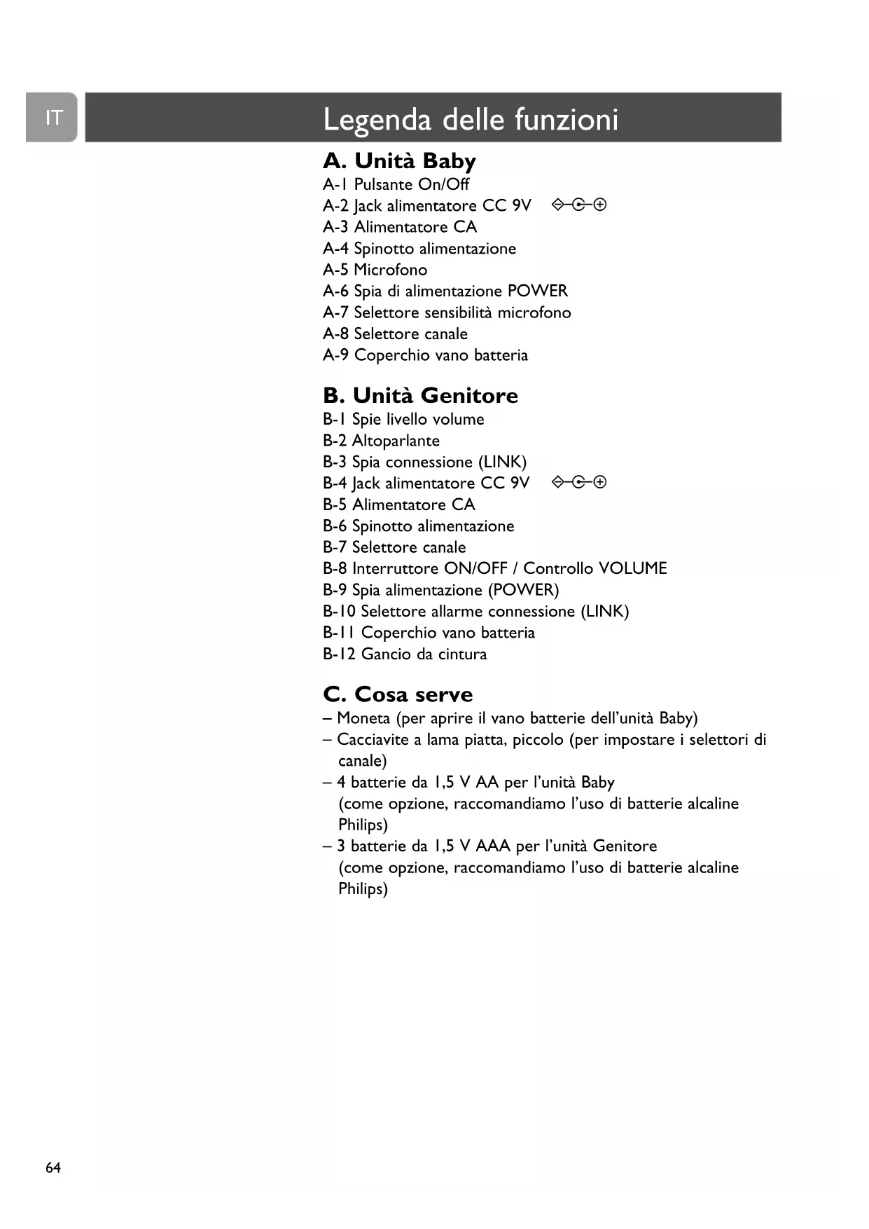 – 4 batterie da 1,5 V AA per l’unità Baby