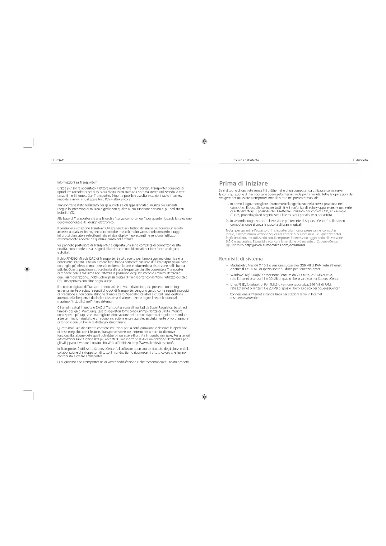 la confi gurazione di Transporter e SqueezeCenter richiede pochi minuti. Tutte le operazioni da