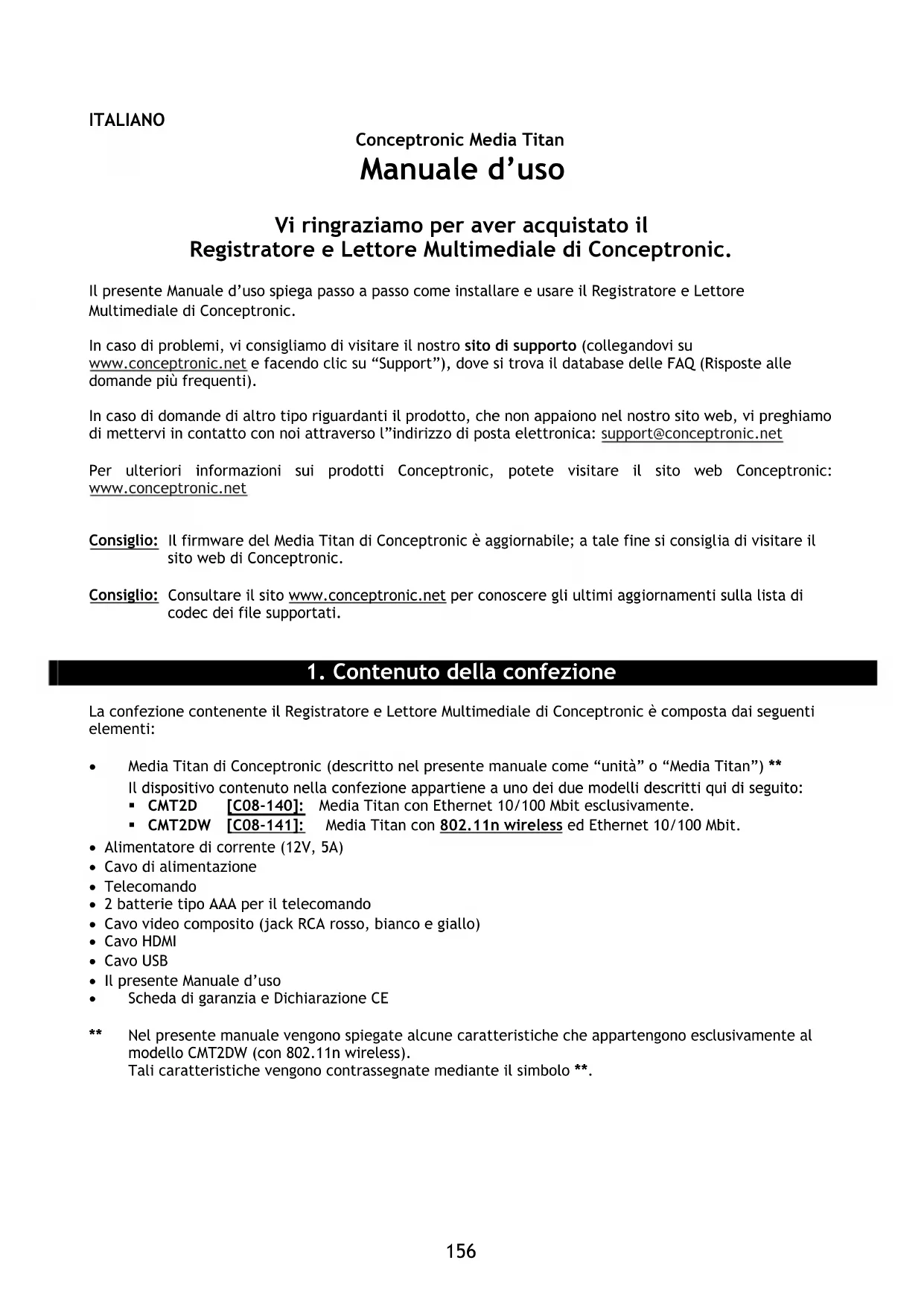 • Media Titan di Conceptronic (descritto nel presente manuale come “unità” o “Media Titan”) **