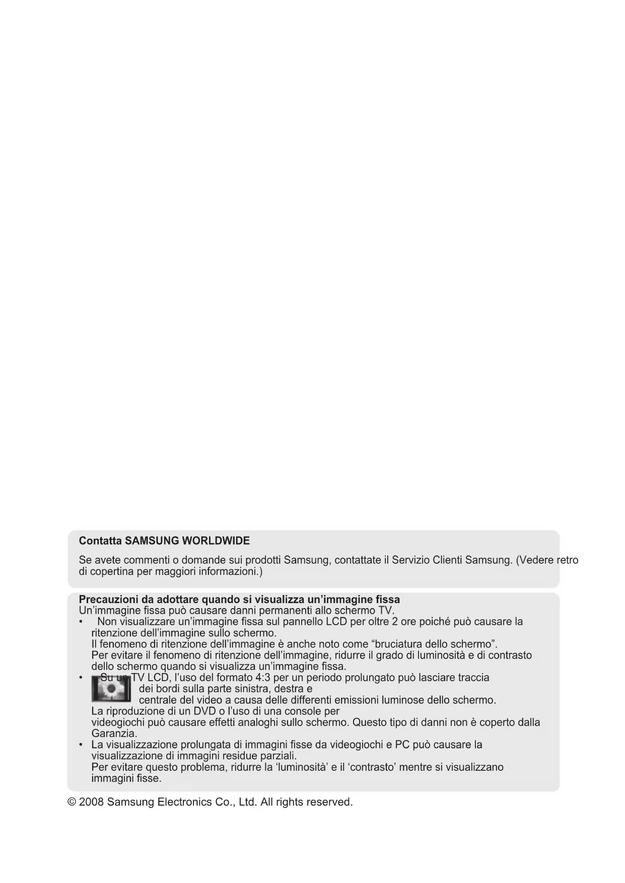 • Non visualizzare un’immagine fissa sul pannello LCD per oltre 2 ore poiché può causare la